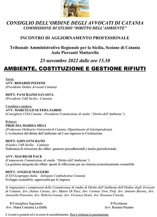 Tribunale Amministrativo Regionale per la Sicilia, Sezione di Catania Aula P. Mattarella h. 15.30