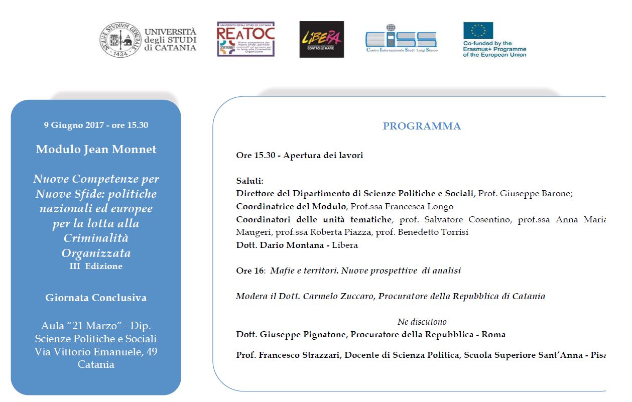 Modulo Jean Monnet | Nuove Competenze per Nuove Sfide: politiche nazionali ed europee per la lotta alla Criminalità Organizzata III Edizione