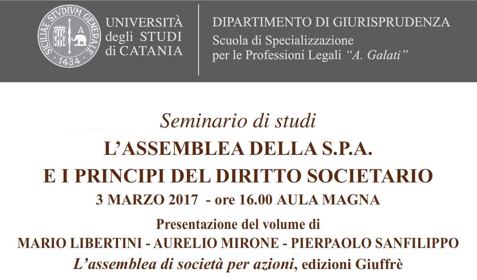 Seminario di studi: L'assemblea della S.P.A. e i principi del diritto societario